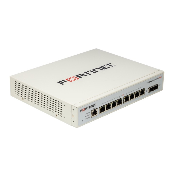 L2 Switch - 8 x GE RJ45 ports, 2 x GE SFP, Fanless, 12V/3A power adapter of input voltage 100 - 240VAC and PSE dual powered L2+ management switch, FortiGate Switch controller compatible.