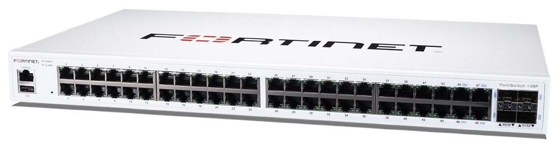 FortiSwitch-148F is a performance/price competitive L2+ management switch with 48x GE port + 4x SFP+ port + 1x RJ45 console