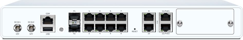 XGS 136 HW Appliance with 10 GE + 2x 2.5GE with PoE (30W each) + 2 SFP ports, 1 expansion bay for optional 3G/4G module, SSD + Base License (incl. FW, VPN & Wireless) for unlimited users + power cable