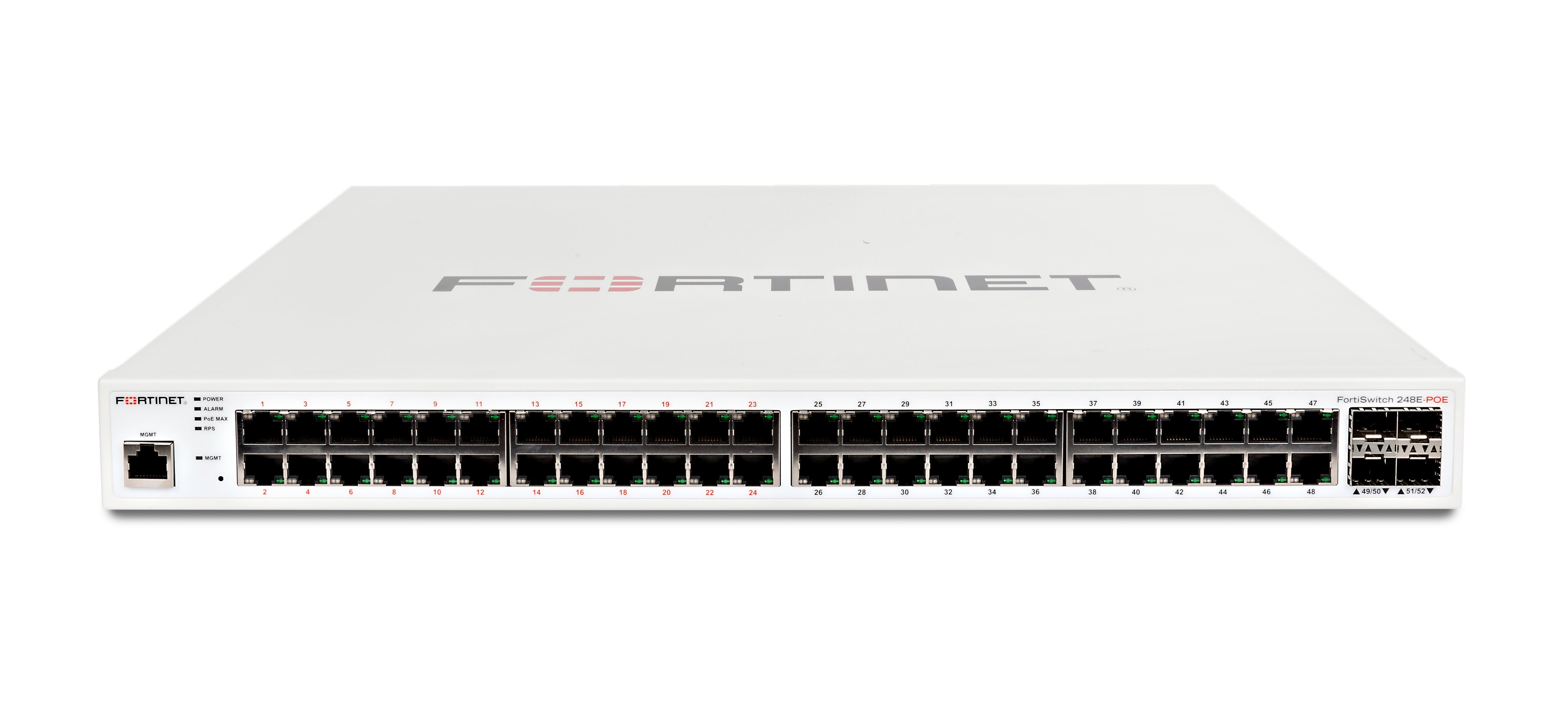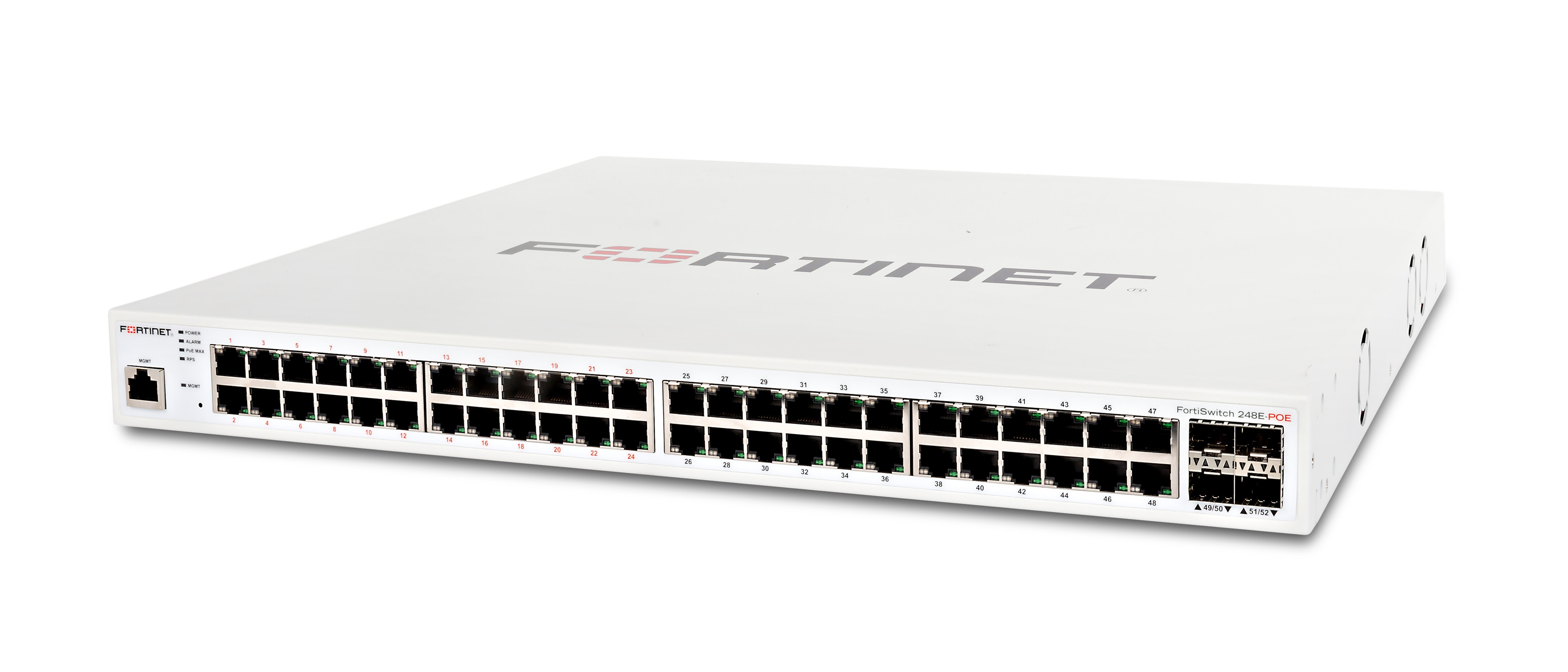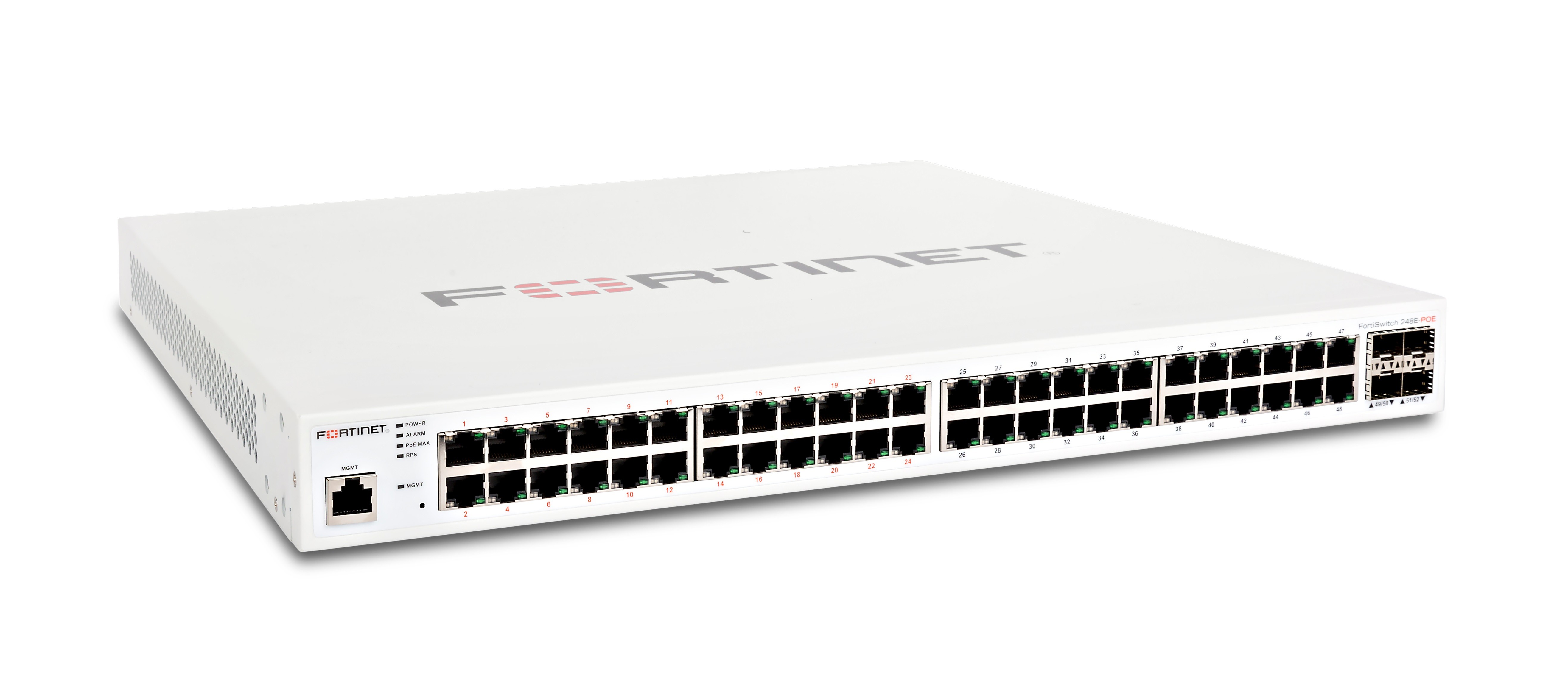 Layer 2/3 FortiGate switch controller compatible PoE+ switch with 48 x GE RJ45 ports, 4 x GE SFP, with automatic Max 370W POE output limit
